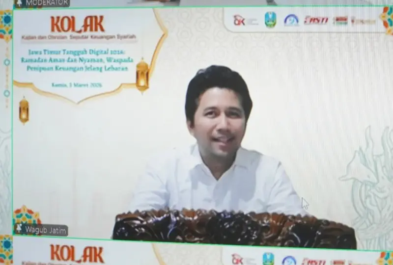 Hal tersebut disampaikan Emil saat menjadi narasumber dalam kegiatan Kajian dan Obrolan Seputar Keuangan Syariah (KOLAK) bertema “Jawa Timur Tangguh Digital 2026: Ramadan Aman dan Nyaman, Waspada Penipuan Keuangan Jelang Lebaran”. Kegiatan ini diselenggarakan oleh Otoritas Jasa Keuangan bersama Dinas Komunikasi dan Informatika Provinsi Jawa Timur.