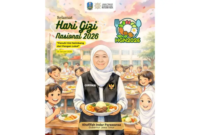 Pada momentum Hari Gizi Nasional 2026, Gubernur Khofifah juga mengajak seluruh elemen masyarakat untuk meningkatkan kesadaran akan pentingnya gizi seimbang melalui gerakan “Sehat Dimulai dari Piringku”, serta berkomitmen untuk terus memperkuat sinergi lintas sektor dalam edukasi gizi, penguatan ketahanan pangan lokal, dan percepatan penurunan stunting sebagai investasi jangka panjang menuju Jawa Timur yang sehat, mandiri, dan berdaya saing.