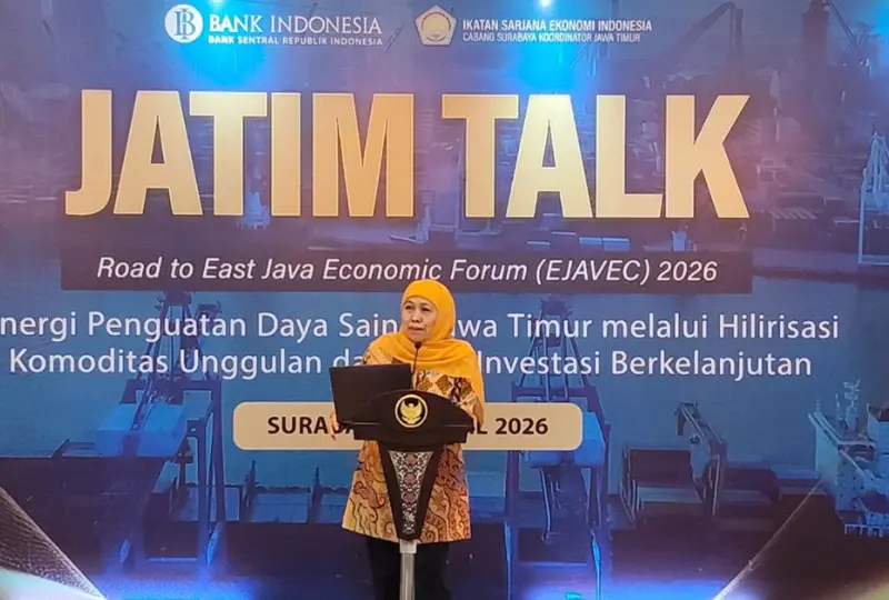 Hal tersebut disampaikan saat menjadi keynote speaker dalam kegiatan Jatim Talk Road to East Java Economic Forum (EJAVEC) 2026 yang mengangkat tema “Sinergi Penguatan Daya Saing Jawa Timur melalui Hilirisasi Komoditas Unggulan dan Iklim Investasi Berkelanjutan", dilansir melalui laman resmi Kominfo Jatim, Senin (6/4/2026).