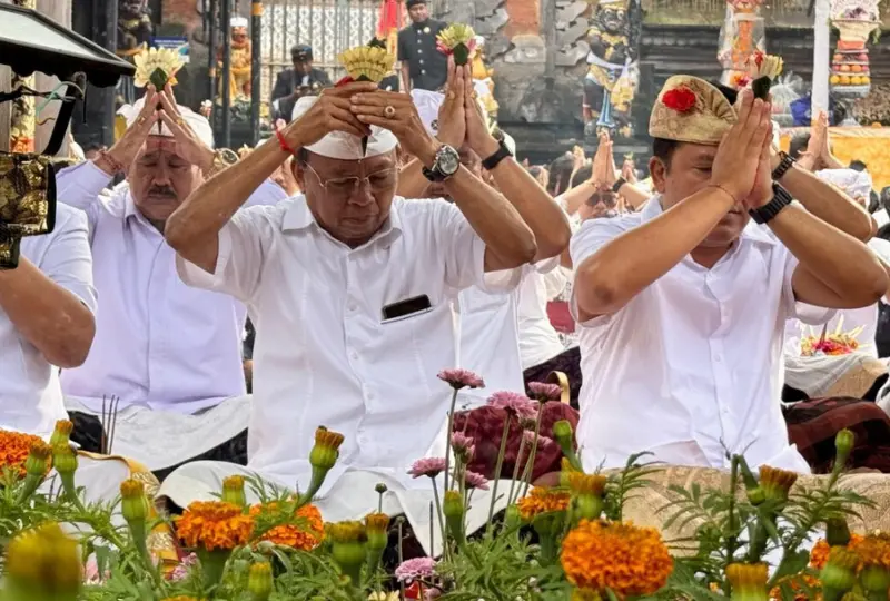 BANGLI – Gubernur Bali, Wayan Koster memohon kerahayuan jagat Bali saat melaksanakan persembahyangan pada Karya Ngusaba Kadasa di Pura Ulun Danu Batur, Kabupaten Bangli pada, Kamis (Wraspati Wage, Watugunung) 2 April 2026.